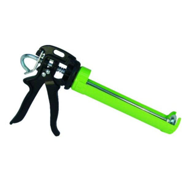 All standard 300ml cartridges may be used with this high thrust caulking gun. Thrust ratio 26:1
