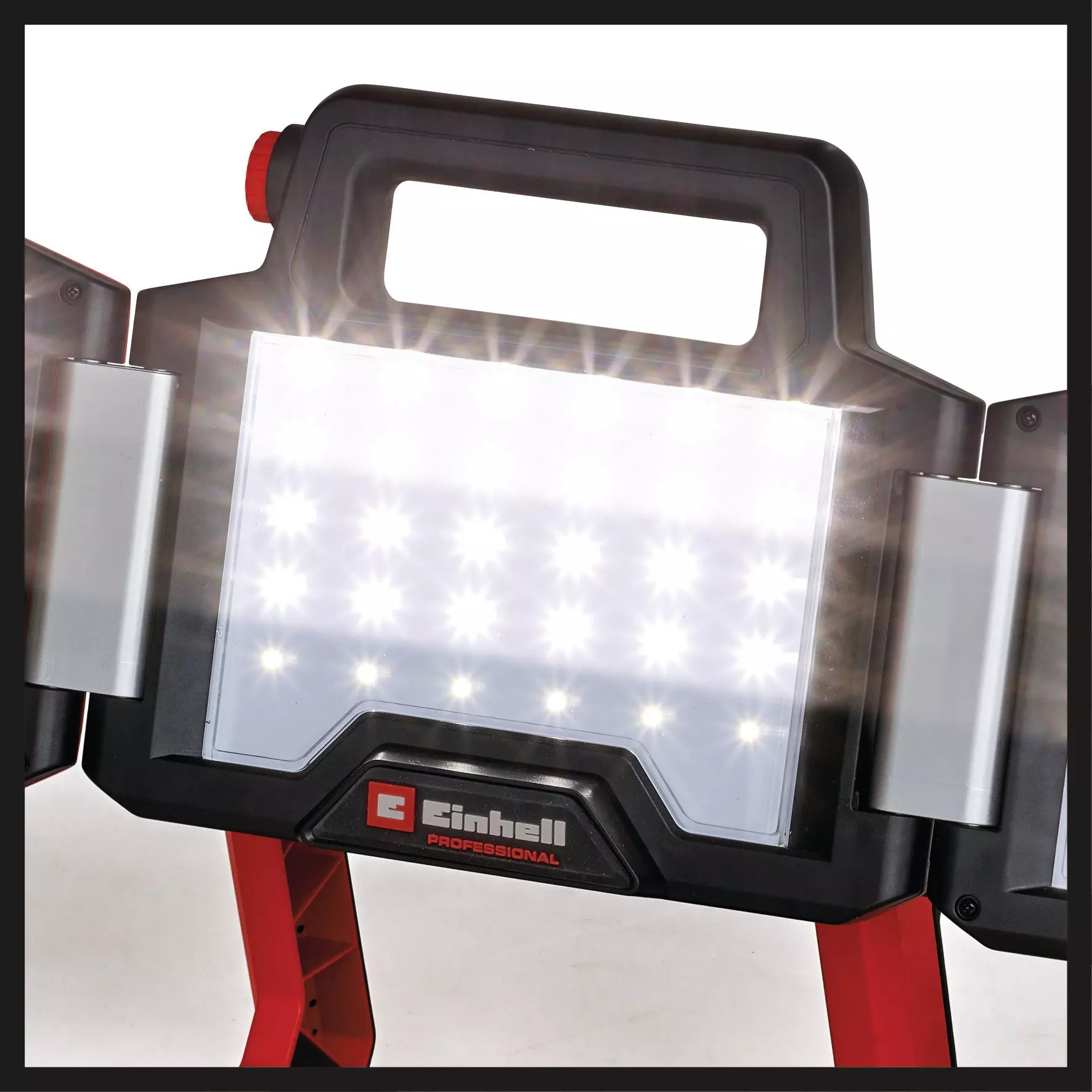 The Einhell 3600 lumen Professional cordless folding panel LED work light with tripod 4514173 brings light into the dark, whether on the construction site or in the workshop, garage or garden. The set includes a folding panel LED work light and a tripod. A powerful Lithium-Ion battery from the innovative Power X-Change family ensures an optimal light level. The bright lamp is a member of the Power X-Change family, which means: any battery can be combined with any tool from this cleverly designed system. A total of 60 powerful and dimmable LED produce a total of 3600 lumens to ensure optimal illumination, at any angle and in every corner. The Einhell cordless folding panel LED work light is highly versatile thanks to its swivelling light head. In addition, the two light panels on the left and right can be adjusted to provide illumination of large areas spanning up to 270°. The neutral-white light temperature of 5700 K provides bright lighting conditions. The battery-powered work light is portable and handy thanks to its integrated carrying handle with a softgrip surface. Numerous mounting options including integrated eyelets and a fastening hook mean there are no limits to using it anywhere. The high-quality tripod made of robust aluminium is the perfect accessory for your construction site. Any work light or device with a 5/8" thread, such as this folding panel LED work light, can be mounted on the tripod. The tripod's telescopic rod can be extended from a working height of 33-1/2" up to 67". The tripod can be stowed and transported in a space-saving manner. With the integrated quick-clamp screw joints, the feet and the telescopic rods can be quickly and easily extended and fixed in place. The feet of the tripod have high-quality plastic covers with ribbed support surfaces, which ensures non-slip stability. The product does not include a battery or charger. These are available separately.