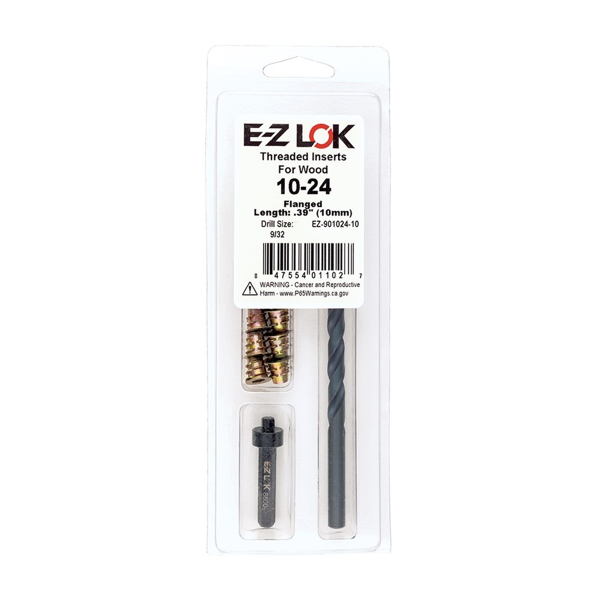 E-Z HEX THREADED INSERT INSTALLATION KIT FOR SOFT WOOD - FLANGED - 10-24 X 10MM