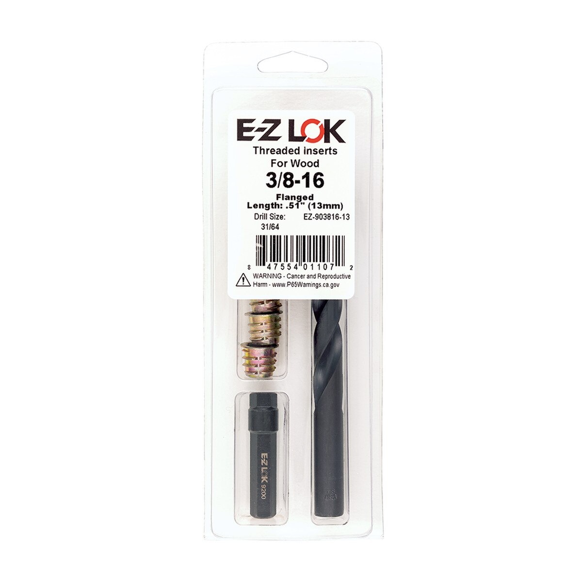 E-Z HEX THREADED INSERT INSTALLATION KIT FOR SOFT WOOD - FLANGED - 3/8-16 X 13MM