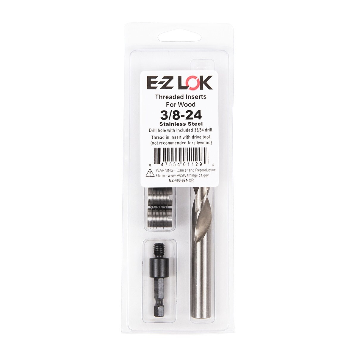 E-Z KNIFE THREADED INSERT INSTALLATION KIT FOR HARD WOOD - STAINLESS - 3/8-24