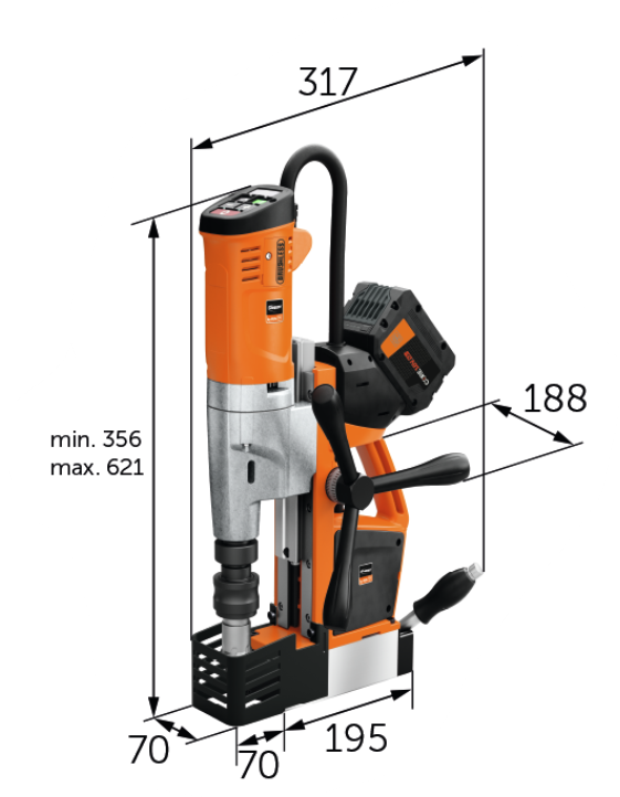 Single-speed cordless magnetic drill with universal features. Forward/reverse, double dovetail for extended stroke range and permanent magnet and maximum functionality for mobile work on the construction site.