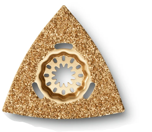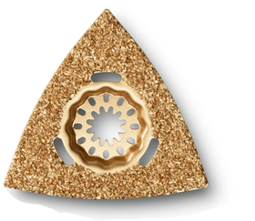 Triangular shape, 3-1/8 in [80 mm] edge length, perforated, can also be used with dust extraction.