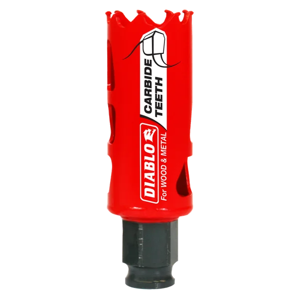 Diablo introduces Carbide Teeth Hole Saws, the first hole saws on the market to cut both wood and metal (wood, nail-embedded wood, plastic, aluminum, metal, cast iron, stainless steel and metal). Delivering up to 50X longer cutting life than bi-metal, these new carbide teeth hole saws offer faster cutting performance and increased productivity.