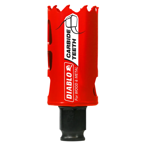 Diablo introduces Carbide Teeth Hole Saws, the first hole saws on the market to cut both wood and metal (wood, nail-embedded wood, plastic, aluminum, metal, cast iron, stainless steel and metal). Delivering up to 50X longer cutting life than bi-metal, these new carbide teeth hole saws offer faster cutting performance and increased productivity.