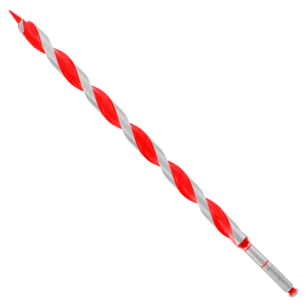 Diablo’s Auger Bit range provides maximum performance, extreme durability and superior life in nail-embedded wood applications. A two-step cutting action creates holes that are precise and clean. The self-feeding Dura-Tip™ pulls the bit while the dual cutting edge delivers an effortless, smooth drilling experience in wood with nails. Deep flutes enhance the chip evacuation process for more holes per charge. Quick change shank increases stability and durability in cordless and corded impact wrenches and drill drivers.