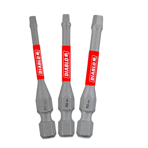 Diablo's driver bit range of Square bits delivers maximum performance, extreme durability and up to 50x longer life when installing and removing fasteners. An optimized tip design provides a strong, precise grip that reduces wear, stripping and slippage. Torque Resistant Design absorbs torque for less stress at the tip when tightening and removing nuts and screws. This range is Impact Strong™, delivering increased shank stability and durability in cordless and corded impact and drill drivers.