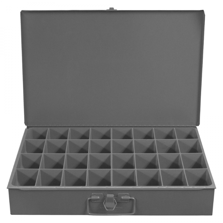 Large Steel Compartment Box, 32 Compartments, Gray