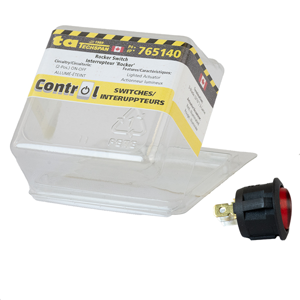 SWITCH ROCKER ROUND ON/OFF 3-BLD RED P-LIGHT SPST U/M PC
