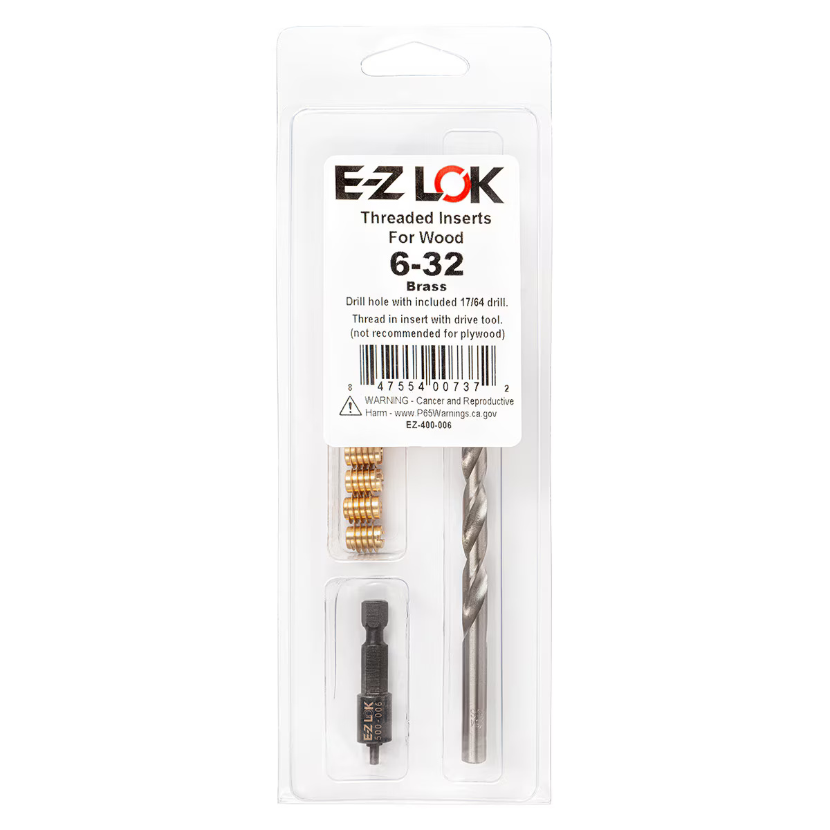 E-Z KNIFE THREADED INSERT INSTALLATION KIT FOR HARD WOOD - BRASS - 6-32