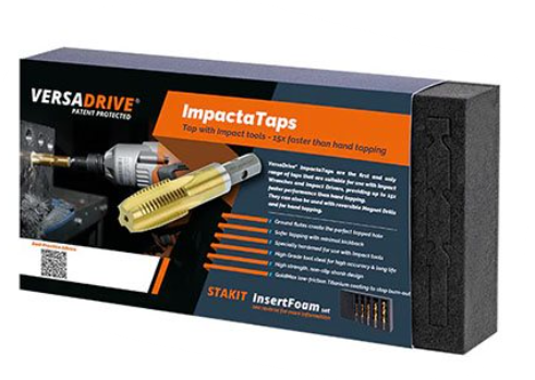 VersaDrive® ImpactaTaps est la première et la seule gamme de tarauds pouvant être entraînés par des clés à chocs et des tournevis à percussion, offrant des performances au moins 15 fois plus rapides que le taraudage manuel.