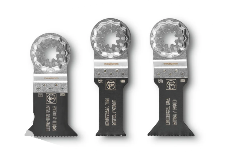 Assemblage des 3 lames de scie E-Cut FEIN les plus courantes pour une utilisation universelle. Réduction par rapport au prix à l’unité. Parfaitement équipé pour toutes les applications de sciage.