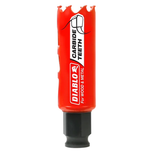 Diablo présente les scies-cloches à dents en carbure, les premières scies-cloches du marché capables de couper à la fois le bois et le métal (bois, bois avec clous, plastique, aluminium, métal, fonte, acier inoxydable et autres métaux). Offrant jusqu’à 50 fois plus de durée de vie que les scies bi-métal, ces nouvelles scies-cloches à dents en carbure assurent une coupe plus rapide et une productivité accrue.
