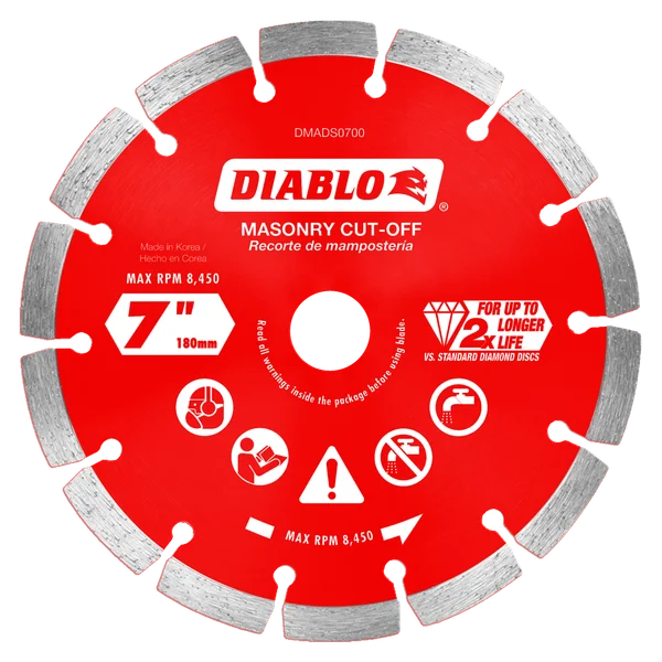 La lame de découpe segmentée diamantée pour maçonnerie de Diablo offre une durabilité extrême et une durée de vie prolongée dans le béton, le béton armé, la brique et le parpaing. Cette lame à bord diamanté offre jusqu’à 2 fois plus de durée de vie que les disques diamantés standards. Les diamants de qualité industrielle, associés à un corps de disque durci, assurent une durabilité longue durée et maximisent la qualité de coupe dans les matériaux durs, même dans des applications extrêmes.