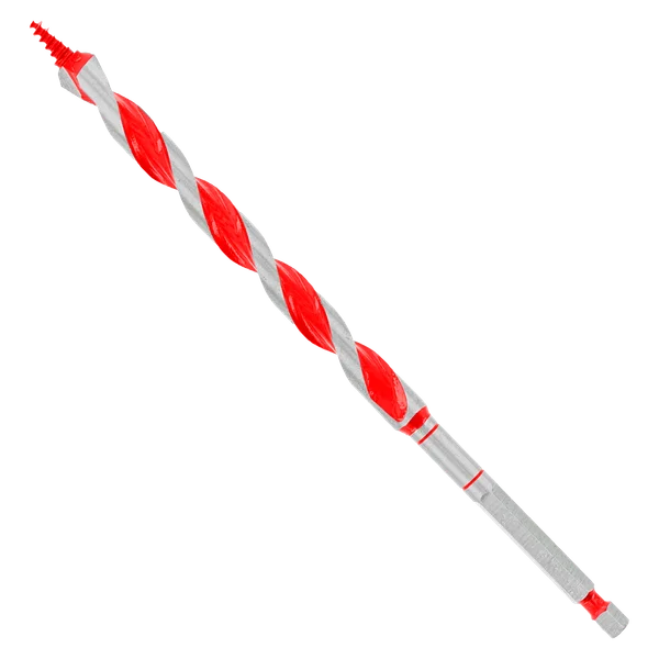La gamme de mèches à bois Diablo offre des performances maximales, une durabilité extrême et une longue durée de vie dans les applications de bois avec clous. Une action de coupe en deux étapes crée des trous précis et propres. La pointe auto-alimentante Dura-Tip™ entraîne la mèche tandis que le double tranchant assure un perçage fluide et sans effort dans le bois avec clous. Les cannelures profondes améliorent l’évacuation des copeaux pour percer davantage de trous par charge. Le mandrin hexagonal 1/4 in. à changement rapide augmente la stabilité et la durabilité dans les clés à chocs et perceuses filaires ou sans fil.