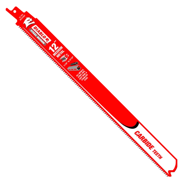 Les lames de scie alternative Diablo's Steel Demon™ à dents en carbure pour métaux moyens offrent une durée de vie de coupe 50 fois plus longue et des finitions plus nettes dans les profilés, les tuyaux, l’acier inoxydable et tous les autres métaux d’une épaisseur allant de 1/16 po à 5/16 po. Les dents en carbure haute densité TiCo™ haute performance assurent une durabilité prolongée. Un corps de lame surdimensionné permet des coupes plus droites avec peu de vibrations et de cliquetis lors de la coupe de métaux moyens. Une connexion améliorée entre la pointe et la lame permet une résistance extrême aux impacts.