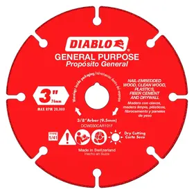 • Optimisé pour les scies compactes 3" de fabricants tels que : Milwaukee® (arbre 3/8"; 20 000 tr/min), Ryobi® (arbre 3/8"; 19 000 tr/min) et Ridgid® (arbre 3/8"; 19 500 tr/min)
