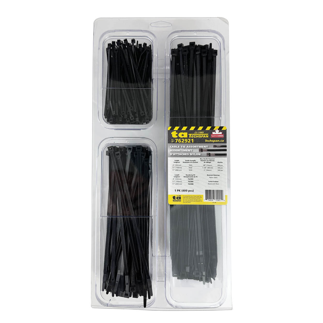 CABLE TIE ASSORTMENT BLK 400PK U/M PK